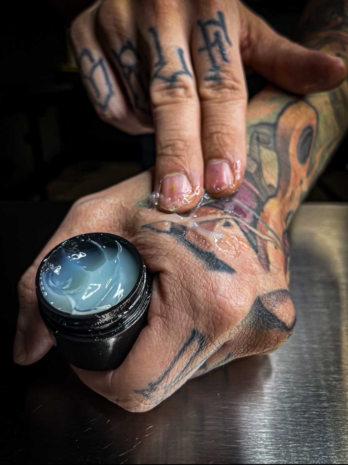Protección Inicial: Al finalizar el tatuaje, se coloca un plástico protector que debe mantenerse durante un mínimo de 2 horas y un máximo de 5 horas. Este plástico sirve como barrera contra bacterias y suciedad, protegiendo la zona tatuada en sus primeras horas.